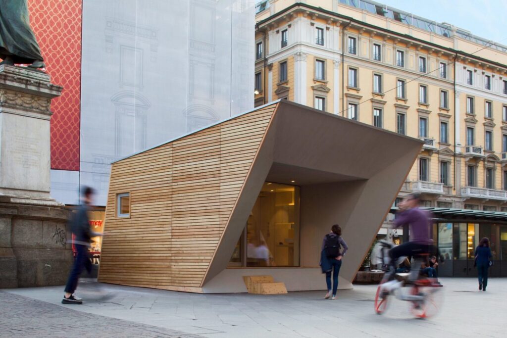 Presentato nel 2025, questo padiglione in abete artigianale ha lavorato sulla luce naturale come materiale da costruzione. Attraverso aperture calibrate, l’opera fungeva da cannocchiale visivo verso il Duomo, isolandolo dal traffico cittadino per restituirgli una dimensione metafisica e spirituale.